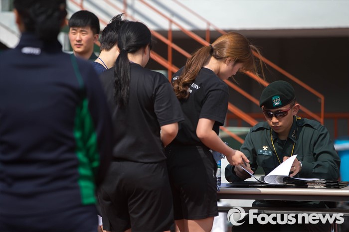 (서울=포커스뉴스) 28일 오후 서울 효창동 효창운동장에서 열린 학군단 57기 후보생 선발전형 체력검정에서 숙명여대 응시생들이 시험을치르고 있다.