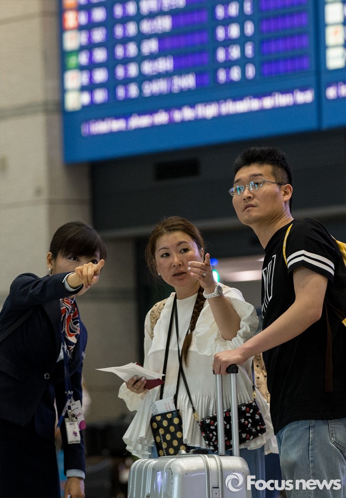 (영종도=포커스뉴스) 중국 노동절 연휴와 일본 골든 위크를 맞아 1일 외국인 관광객들이 인천국제공항을 통해 입국하고 있다.