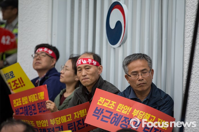 (서울=포커스뉴스) 27일 오후 서울 종로구 정부종합청사 앞에서 전교조(전국교직원노동조합)와 민주교육과 전교조 지키기 전국행동의 주최로 교육주체 결의대회가 열리고 있다.