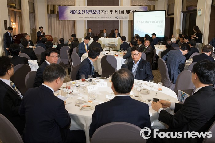 (서울=포커스뉴스) 28일 오전 서울 중구 한국프레스센터에서 열린 '해운조선정책포럼 창립 및 제1회 세미나'에 김성귀(왼쪽부터) 한국해양수산개발원 원장, 전준수 서강대학교 교수, 조규열 해양금융종합센터장이 참석하고 있다.