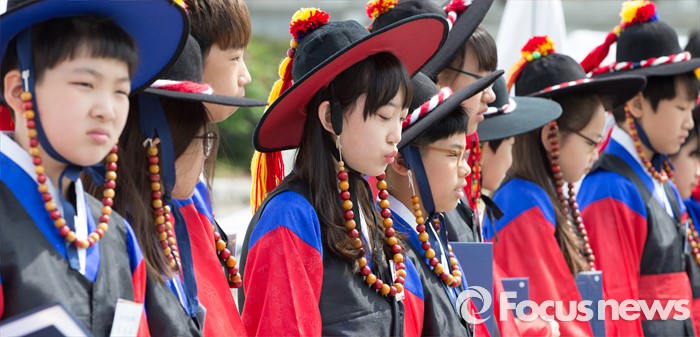 (서울=포커스뉴스) 28일 오전 서울 중구 남산골한옥마을에서 열린 '충무공 탄생 471주년 기념 다례식'에서 소년소녀 이순신으로 선택된 초등학생들이 표창장을 받고 잠시 대기하고 있다.