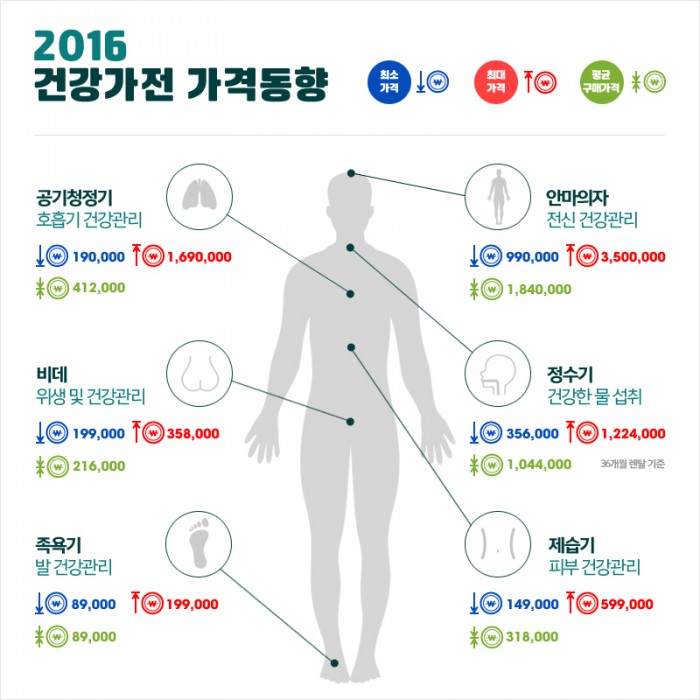건강과 직결되는 식생활에 대한 관심도 높아지면서 정수기는 가정이나 사무실에서 필수품이 됐다. 정수기는 36개월 렌트로 이용 시 최소 약 35만원에서 최대 약 122만원대까지 가격대가 형성됐다.