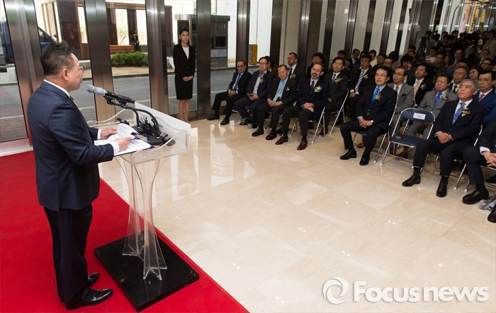 (서울=포커스뉴스) 29일 오전 서울 종로구 SM면세점 서울점에서 열린 그랜드 오픈식에 참석한 권희석 SM면세점 대표이사가 인사말을 하고 있다.
