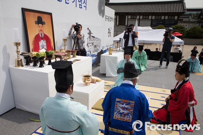 (서울=포커스뉴스) 28일 오전 서울 중구 남산골한옥마을에서 중구청 관계자들이 '충무공 탄생 471주년 기념 다례식'을 개최하고 있다.
