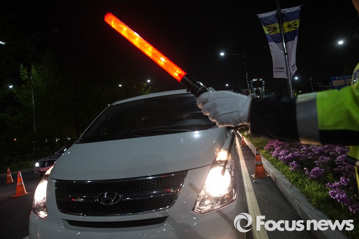(서울=포커스뉴스) 대검찰청과 경찰청이 음주운전 근절을 위한 '음주운전사범 단속 및 처벌 강화 방안'을 시행한 25일 오후 서울 송파구 인근에서 경찰이 음주단속을 하고 있다.