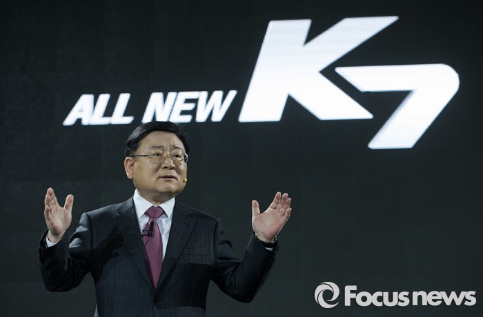 차종별 해외 판매는 신형 모델의 판매 호조를 바탕으로 스포티지가 총 4만 8,897대 판매돼 최다 판매 차종에 올랐으며, 프라이드, K3가 각각 2만 7,455대, 2만 1,624대 판매되며 뒤를 이었다.(서울=포커스뉴스) 26일 오전 서울 강남구 그랜드 인터컨티넨탈 서울 파르타스에서 열린 '기아차 올 뉴 K7 신차발표회'에서 이형근 기아자동차 부회장이 신차 발표를 하고 있다. 2016.01.26 오장환 기자
