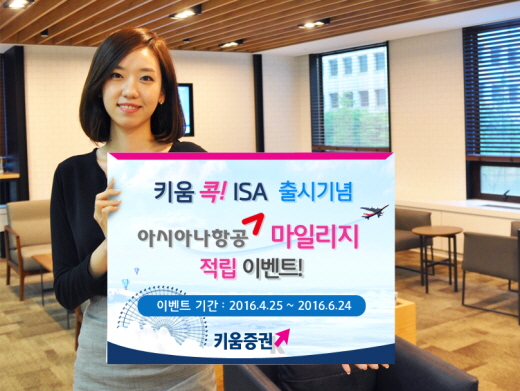 키움증권은 자사의 ISA(개인종합자산관리계좌)에 가입하는 아시아나클럽 회원을 대상으로 아시아나항공 마일리지와 모형항공기를 증정할 계획이다.
