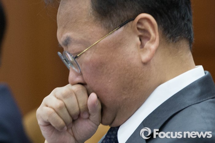 (서울=포커스뉴스) 28일 오후 서울 종로구 정부서울청사에서 열린 '경제관계장관회의'에 참석한 유일호 기획재정부 장관 겸 경제부총리가 기침하고 있다.