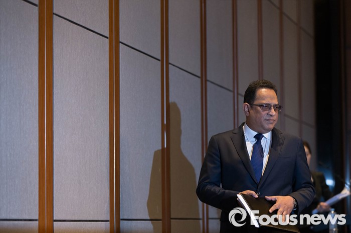 기자회견장 입장하는 아타 샤프달 옥시 한국법인장