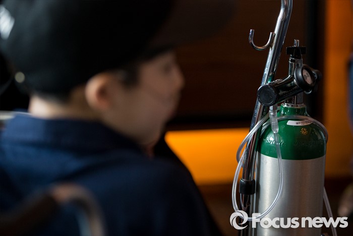 (서울=포커스뉴스) 2일 오전 서울 영등포구 콘래드호텔에서 열린 '옥시레킷벤키저(현 RB코리아) 가습기 살균제 파동' 관련 기자회견장 앞에서 가습기 살균제 피해자 임성준 군이 생각에 잠겨 있다.