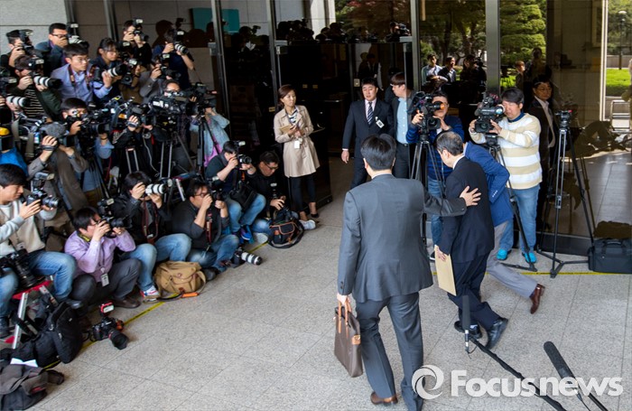 (서울=포커스뉴스) 수 많은 목숨을 앗아간 가습기 살균제가 만들어졌을 당시 옥시 최고경영자를 지낸 신현우 전 옥시 대표가 26일 오전 서울 서초구 서울중앙지검에 피의자 신분으로 출석 하고 있다.