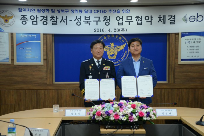 (서울=포커스뉴스) 서울 종암경찰서는 성북구 장위동 일대 범죄 예방과 안전한 환경 조성을 위해 성북구청과 업무협약을 맺었다고 29일 밝혔다.