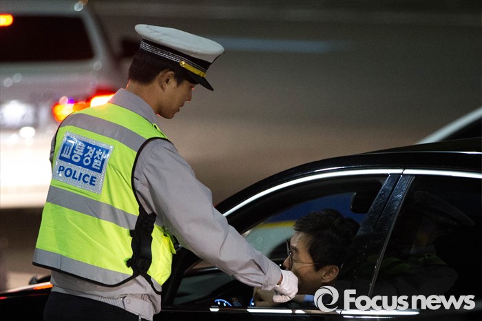 (서울=포커스뉴스) 대검찰청과 경찰청이 음주운전 근절을 위한 '음주운전사범 단속 및 처벌 강화 방안'을 시행한 25일 오후 서울 송파구 인근에서 경찰이 음주단속을 하고 있다.