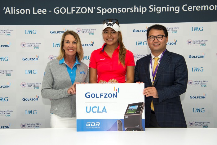 미국 현지에서 지난 20일 가진 스폰서십 체결식에는 앨리슨 리를 비롯 미국 캘리포니아주립대(UCLA) 골프팀 헤드코치 캐리 포시스(Carrie Forsyth)와 스윙잉 스커츠 LPGA 클래식 수석 디렉터 케빈 홉킨스(Kevin Hopkins), 골프존 미주유럽사업본부장 임동진 본부장 등이 참석했다.