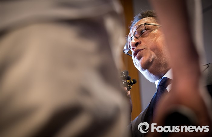 (서울=포커스뉴스) 2일 오전 서울 영등포구 콘래드호텔에서 열린 '옥시레킷벤키저(현 RB코리아) 가습기 살균제 파동' 관련 기자회견에서 아타 울라시드 사프달 옥시코리아 대표가 피해자 가족들에게 항의 받고 있다.