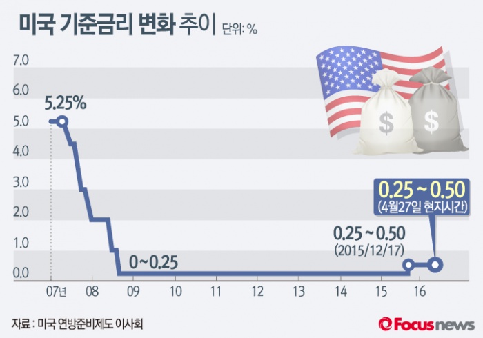 (서울=포커스뉴스) 미국 중앙은행인 연방준비제도(연준)가 현행 0.25%~0.50%인 기준금리를 유지하기로 결정했다.