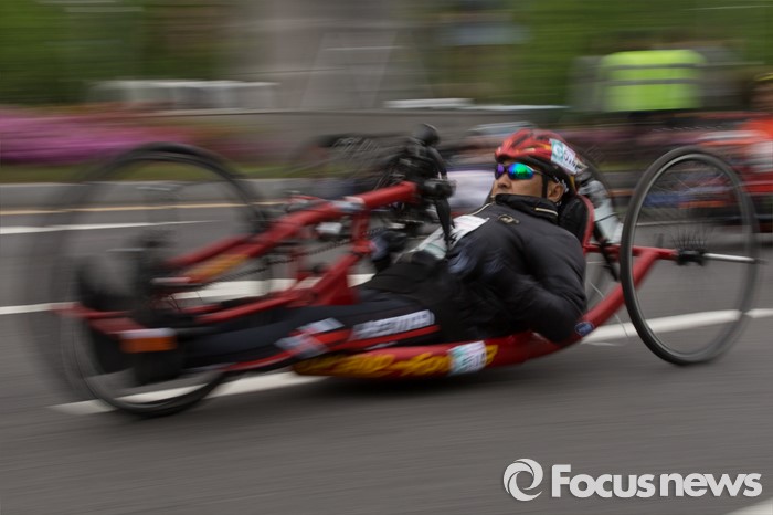 (서울=포커스뉴스) 30일 오전 서울 송파구 잠실종합운동장 인근에서 열린 '제24회 서울국제휠체어마라톤대회'에서 참가자들이 힘차게 출발하고 있다.