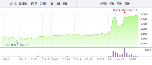 보성파워텍의 주가는 18일 17.8%의 하락폭을 나타낸 이후 16.91%(21일)을 상승폭을 기록하는 등 쭉 상승세를 이어왔다.