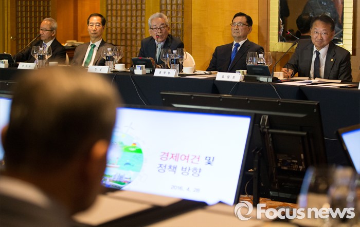 (서울=포커스뉴스) 유일호 경제부총리 겸 기획재정부 장관이 참석한 가운데 28일 오후 서울 서초구 JW메리어트호텔에서 역대 부총리 및 장관과의 만찬 간담회가 열리고 있다.