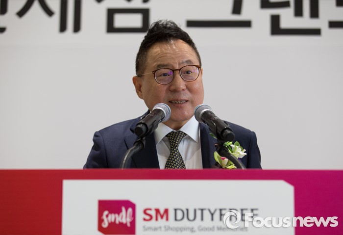 (서울=포커스뉴스) 29일 오전 서울 종로구 SM면세점 서울점에서 열린 그랜드 오픈식에 참석한 권희석 SM면세점 대표이사가 인사말을 하고 있다.
