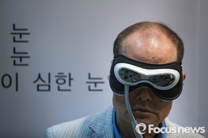 (서울=포커스뉴스) 28일 오전 서울 삼성동 코엑스에서 열린 2016 국제건강산업박람회에서 한 시민이 안구 마사지를 체험하고 있다.