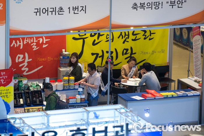 (서울=포커스뉴스) 28일 오전 서울 삼성동 코엑스에서 열린 2016 귀어귀촌 박람회장에서 관계짜들이 시민들과 대화를 나누고 있다.