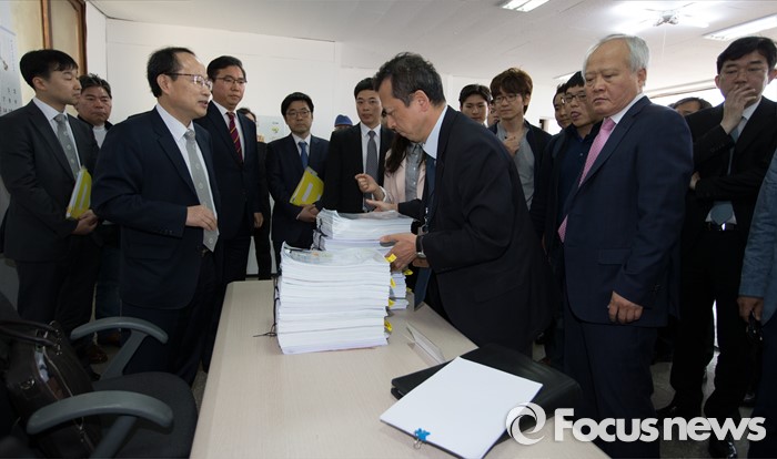 (부여=포커스뉴스) 29일 오후 이완구 전 국무총리가 2013년 재보궐 선거 때 사용한 충남 부여 선거사무소에서 서울고법 형사2부 관계자들이 현장검증을 실시하고 있다.