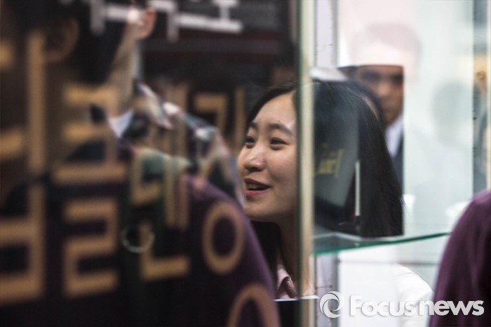 거울에 비친 '박람회를 즐기는 시민'