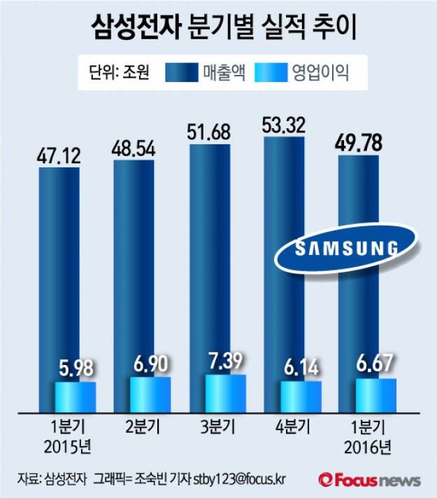| △ [그래픽] 삼성전자 분기별 실적 추이 |