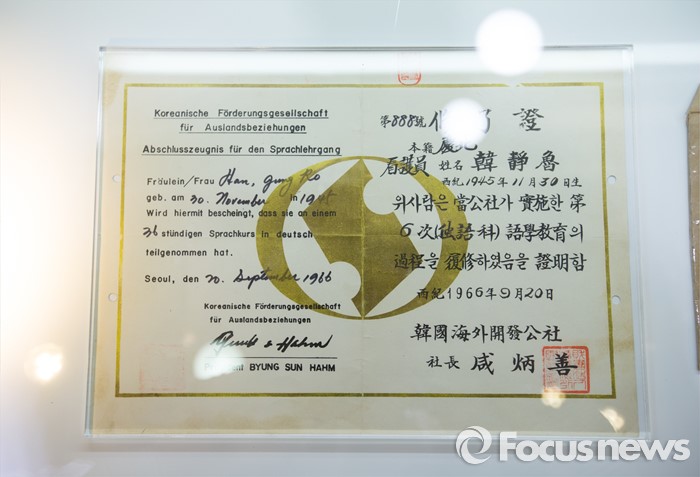 (서울=포커스뉴스)2일 오후 서울 국회 의원회관에서 열린 간호사 파독 50주년 기념행사장에.'어학교육수료증'이 놓여져 있다.