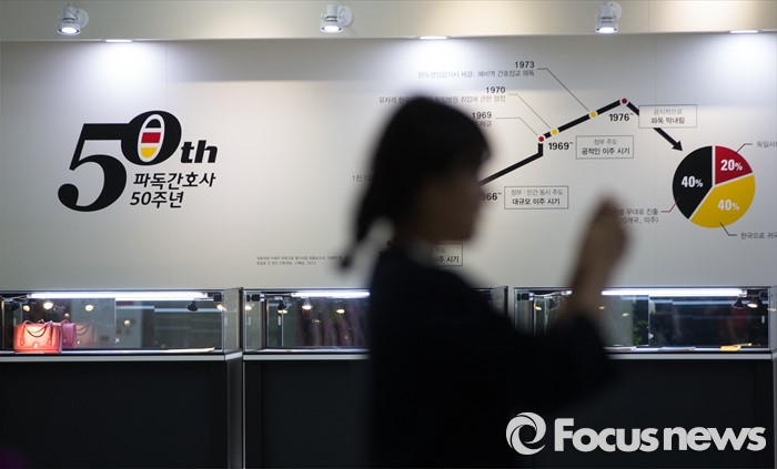 (서울=포커스뉴스) 간호사 파독 50주년 기념행사 참석자가 2일 오후 서울 국회 의원회관에 전시된 기념품을 관람하고 있다.