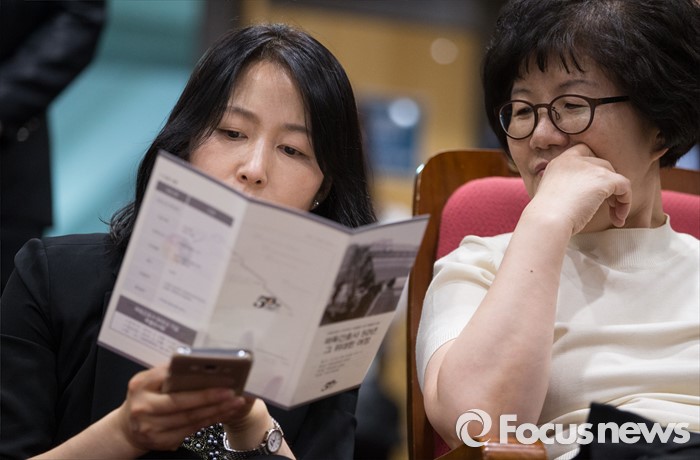 (서울=포커스뉴스)2일 오후 서울 국회 의원회관에서 열린 간호사 파독 50주년 기념행사에서 한 참석자 파독 간호사 연표를 보고 있다.
