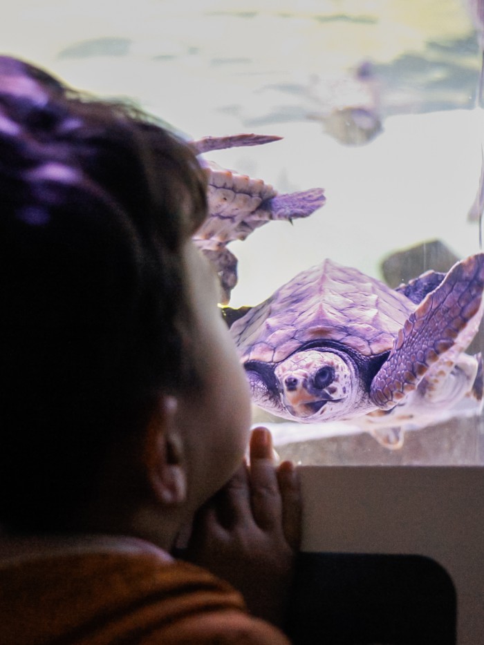 이와 함께 아쿠아플라넷 여수 기프트숍에선 5월 한달간 거북이 인형을 20% 할인 판매한다.한화 아쿠아플라넷 여수를 방문한 한 어린이가 붉은바다거북을 바라보고 있다.<사진제공=한화 아쿠아플라넷 여수>