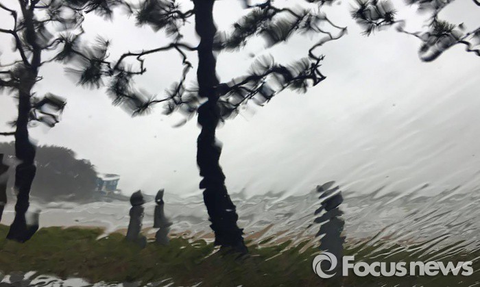 (부산=포커스뉴스) 전국적으로 강한 비,바람이 몰아치는 3일 오전 부산시 해운대구 송정해수욕장에 인적은 끊기고, 외로운 소나무만 세찬 비,바람을 맞고 있다.<독자 이정환씨제공>