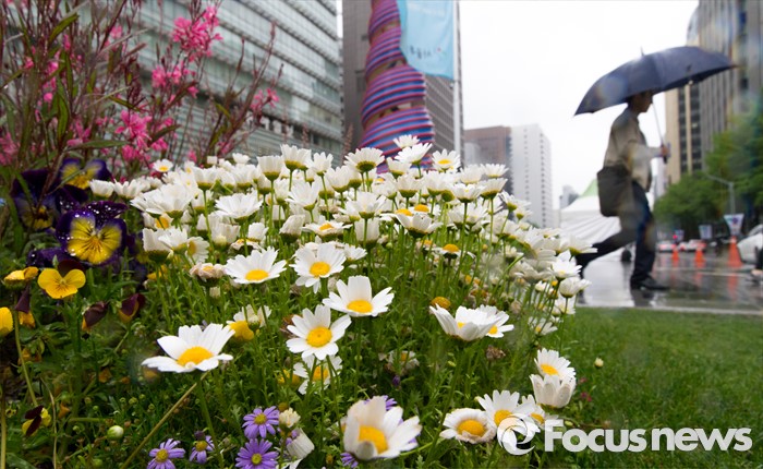 (서울=포커스뉴스) 전국이 흐리고 비가 내리는 3일 오전 서울 청계광장에서 시민들이 발걸음을 재촉하고 있다.