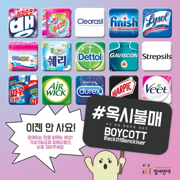 (서울=포커스뉴스) 참여연대가 '가습기 살균제 피해자들의 손을 잡아 주세요!'라는 이름의 옥시레킷벤키저(옥시) 제품 불매 운동을 시작했다.