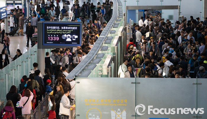 (인천공항=포커스뉴스) 4일 오전 인천국제공항 출국장에 황금연휴를 앞두고 출국하는 여행객들로 북적이고 있다.
