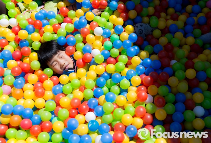 (서울=포커스뉴스) 어린이날을 하루 앞둔 4일 오전 서울 마포구 월드컵공원 난지잔디광장에서 2016 마포어린이축제에 참가한 어린이가 볼풀장에서 즐거운 시간을 보내고 있다.