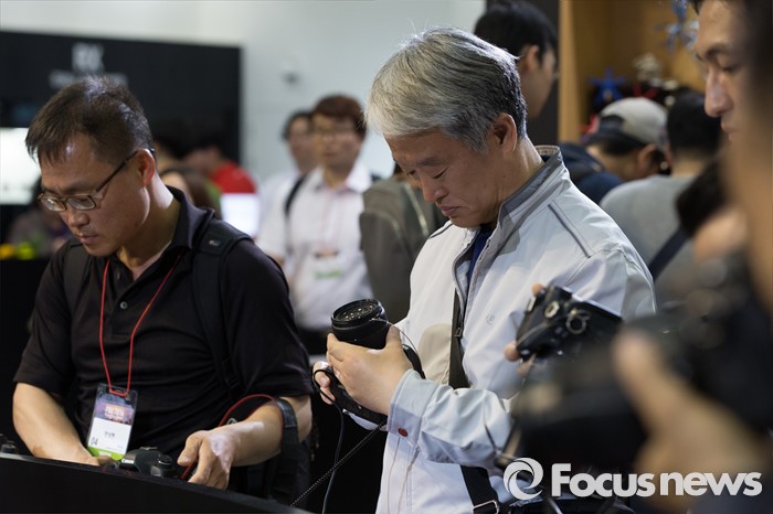 (서울=포커스뉴스) 4일 오후 서울 강남구 코엑스 A,B홀에서 열린 2016 서울국제사진영상기자재전(P&I)에서 관람객들이 제품을 구경하고 있다.