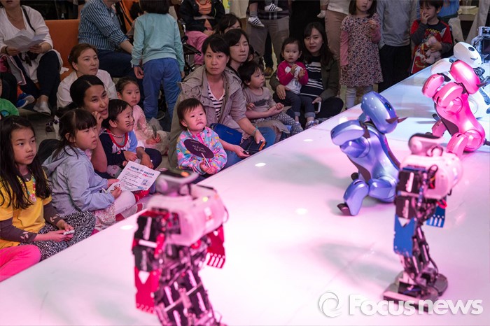 (서울=포커스뉴스) 어린이날을 앞둔 4일 오후 서울 서초구 서울시어린이병원에서 열린 '로봇댄스 및 체험' 행사에 참가한 어린이들이 공연을 관람하고 있다.