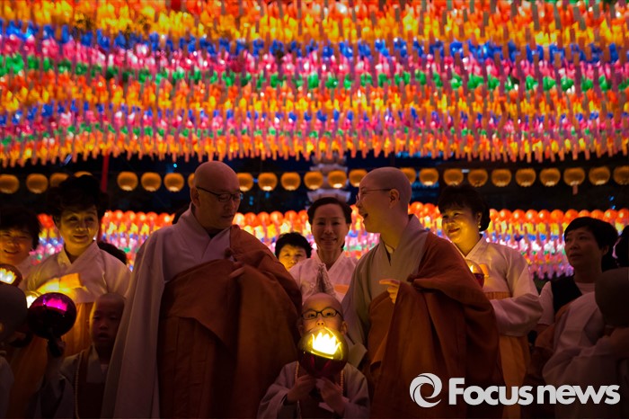 (서울=포커스뉴스) 4일 오후 서울 종로구 조계사에서 연등 점등식이 열리고 있다.