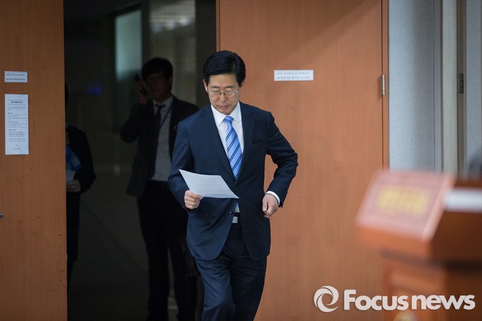 △ 브리핑룸 들어서는 양승조 가습기 살균제 특위 위원장