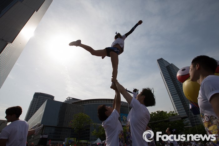 (서울=포커스뉴스) 어린이날을 맞아 5일 오후 서울 영동대로 일대에서 열린 '2016 C-페스티벌'에서 치어리더가 멋진 공연을 펼치고 있다.