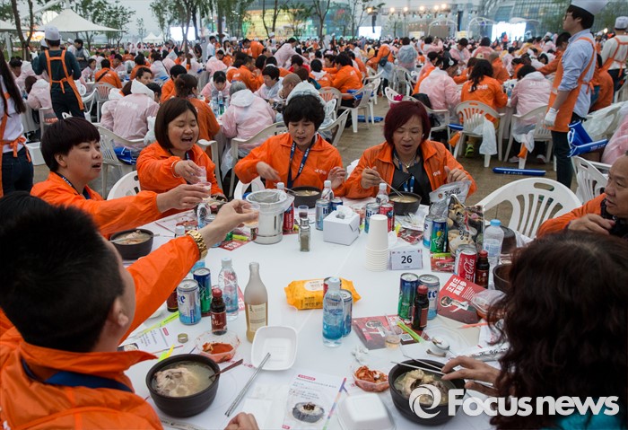 (서울=포커스뉴스) 6일 오후 서울 반포한강공원에서 중국 건강보조제품 회사 중마이그룹 직원들이 삼계탕 파티를 즐기고 있다. 이날 한강공원을 찾은 4천여명의 중마이그룹 직원들은 삼계탕 파티와 태양의 후예 OST 미니 콘서트 등을 즐겼다.