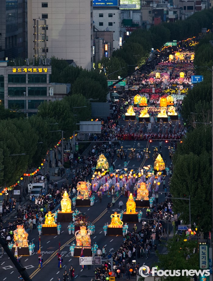 (서울=포커스뉴스) 부처님 오신날을 일주일 앞둔 7일 오후 서울 종로구 흥인지문부터 시작해 조계사까지 이어지는 화려한 연등 행렬이 펼쳐지고 있다.