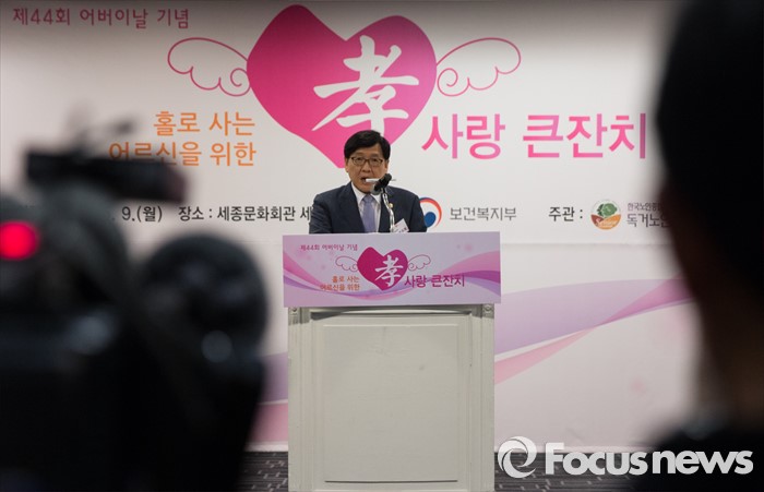 (서울=포커스뉴스) 9일 오전 서울 종로구 세종문화회관에서 열린 '2016 어버이날 孝 사랑 큰잔치' 에 참석한 정진엽 보건복지부 장관이 개회사를 하고 있다.