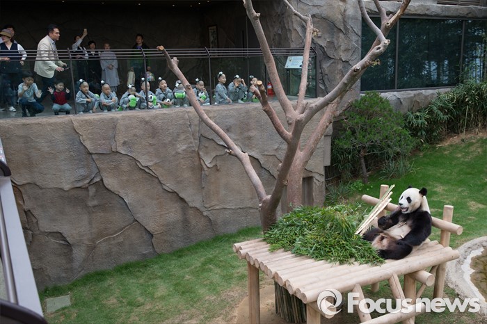 (용인=포커스뉴스) 9일 오전 경기도 용인시 에버랜드에서 동자승들이 판다들을 구경하며 즐거운 시간을 보내고 있다.