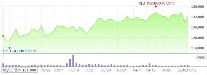 이에 따라 현대홈쇼핑에 대한 목표주가를 종전 15만4000원에서 17만5000원으로 상향 조정했다.최근 3개월간 현대홈쇼핑 주가 추이 <그래픽출처=네이버>