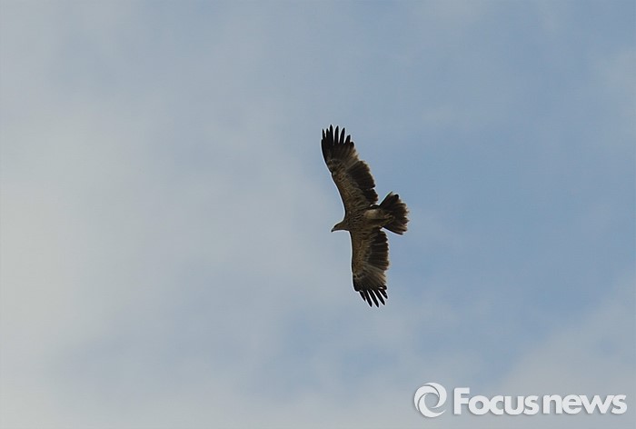(바가 가즈링 촐로/몽골=포커스뉴스)흰죽지수리가 바가 가즈링 촐로 들녘에서 먹이를 찾고 있다.한반도에는 겨울철 1-2마리가 찾아온다.