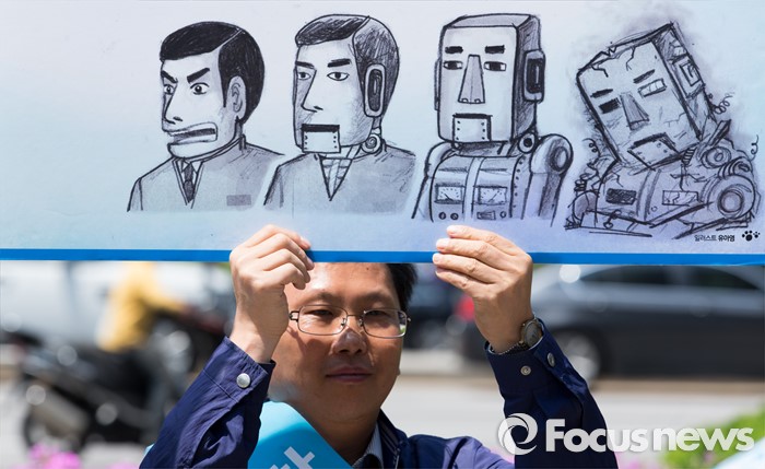 (서울=포커스뉴스) 11일 오전 서울 종로구 청계광장에서 감정노동전국네트워크가 감정노동자 권리보호 캠페인을 하고 있다.